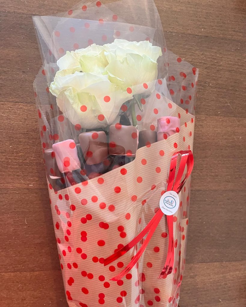 Offrez-lui un bouquet mangeable avec quelques véritables roses également.